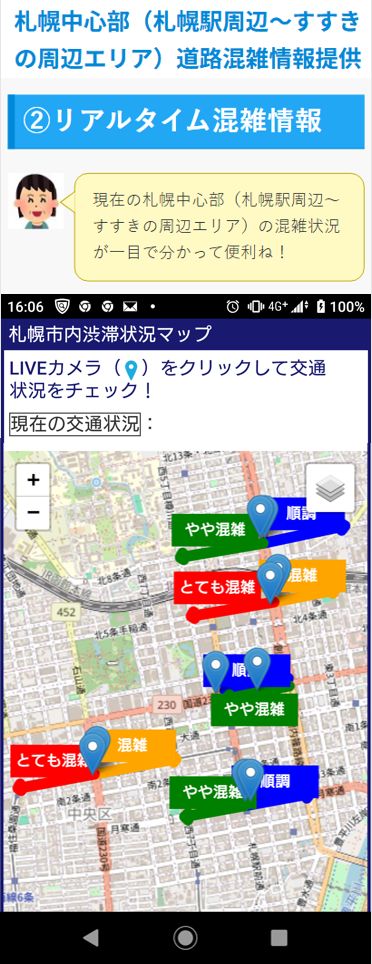 ・札幌中心部(札幌駅周辺~すすきの周辺エリア)のリアルタイム道路混雑情報提供